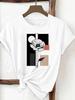 (Asian Size) Women Print Lady Abstract Watercolor Style Trend Short Sleeve Tee Top Clothing Casual Fashion Tshirt Female Graphic T-shirt