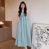 French Elegant Simple Loose Round Neck Pleated Dress Design Sense Large Backless Sleeveless Solid Color Sling Dress