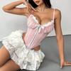 AltGoth Girly Y2K krajkové tílko s krajkou Patchwork Hubený růžový čtvercový límec Dámská ostříhaná vesta elegantní streetwear víla
