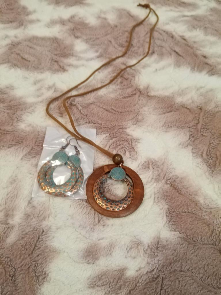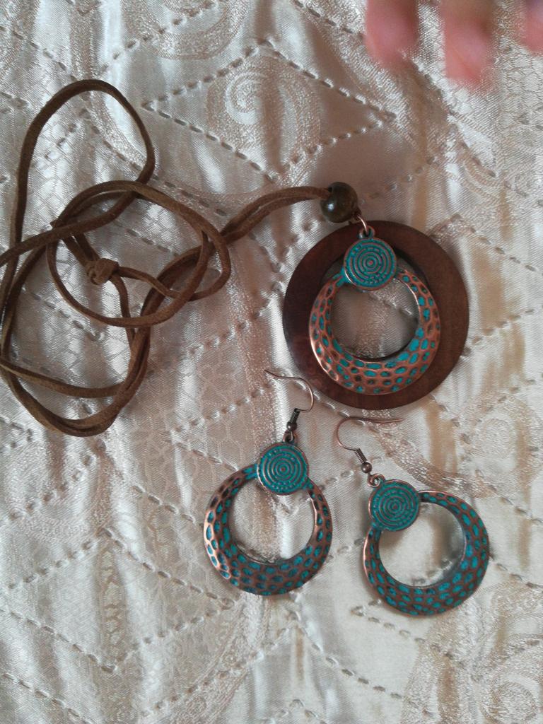 Retro styl Etnický styl Dámská módní sada šperků Bronzová barva Kruhový prsten Přívěsek ze slitiny Odpovídající zelené Náušnice Distressed Craft