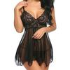 Dámské sexy krajkové černé spodní prádlo tanga set Noční košile na spaní Pyžamo bez zad