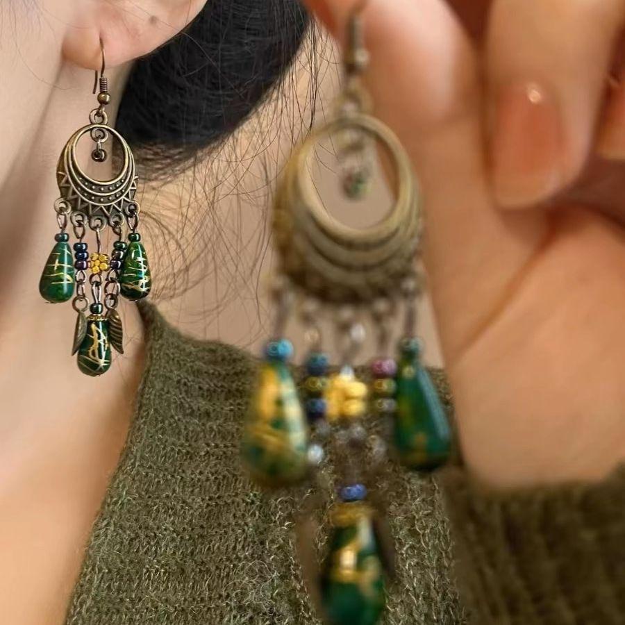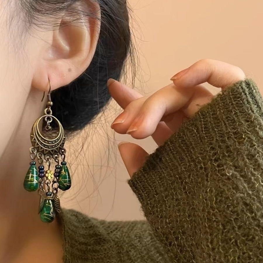 Nové náušnice ve stylu čínského stylu s kapkou vody, Niche temperamentní design, Háček na ucho