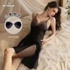 Women's Satin Nightdress Sexy Deep V Nightgown Female Splicing Polka Dot Mesh Suspender Skirt Adjustable Shoulder Strap Dress