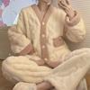 Korálově sametové pyžamo ve francouzském stylu Dámské podzimní a zimní kardiganové flanelové dvoudílné pyžamo s dlouhým rukávem