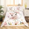 Kids Pink Rose Rabbit King Queen Duvet Cover Cartoon Animal Comforter Cover Rose Moon Floral Bedding Set Polyester Quilt Cover