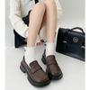 Queen Fan French platform loafers women's 2025 new autumn and winter versatile thick heel retro British style small leather shoes