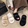 Flat bottom large size fluffy slippers women's 2025 autumn and winter new Korean version versatile warm word double fluffy slippers women