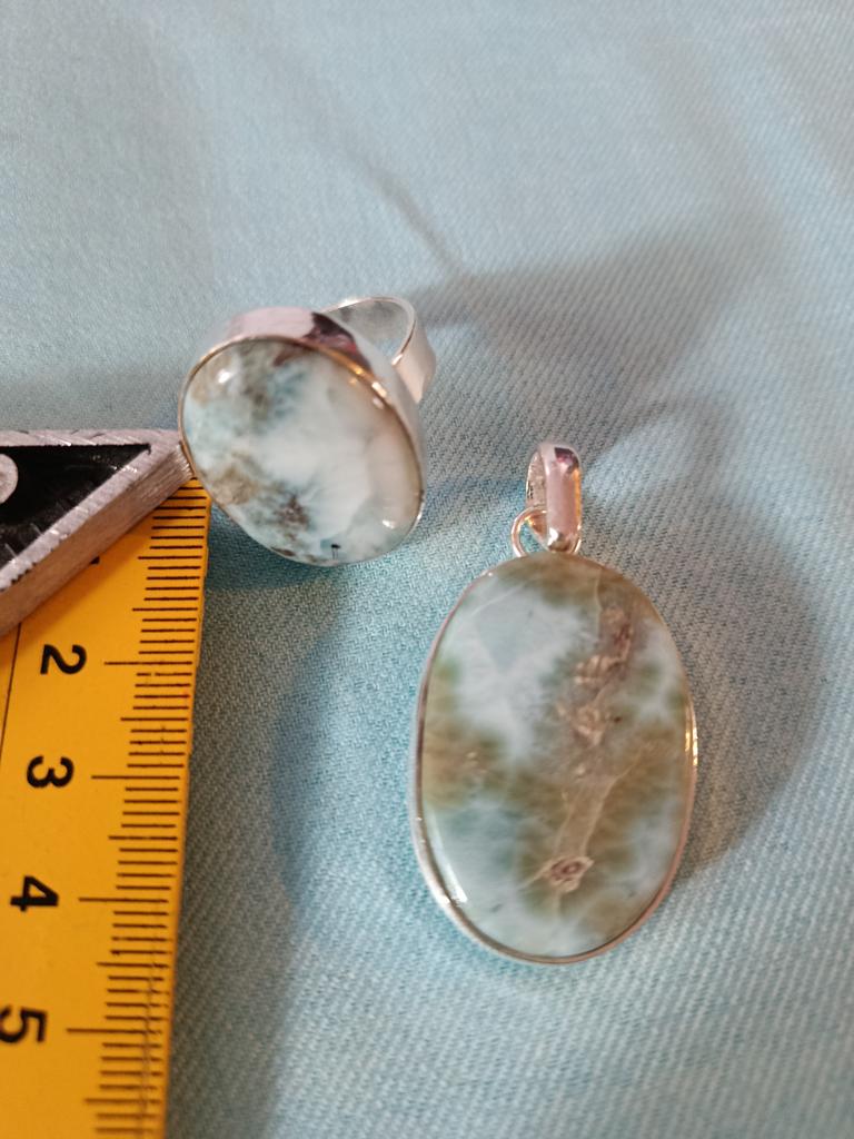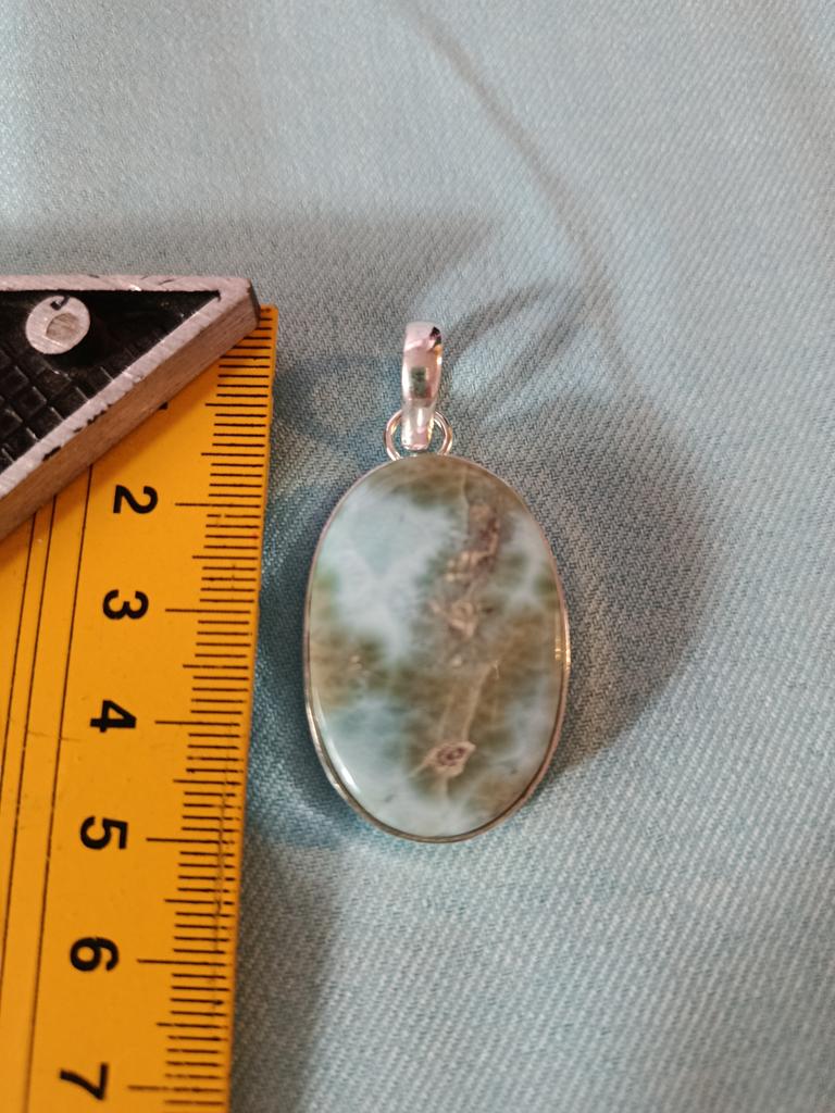 Natural Larimar Gemstone Handmade 925 Sterling Silver Jewelry Pendant 1.85" V0z00