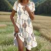 Dámské ležérní módní midi šaty s kulatým výstřihem, krátkým rukávem a retro potiskem