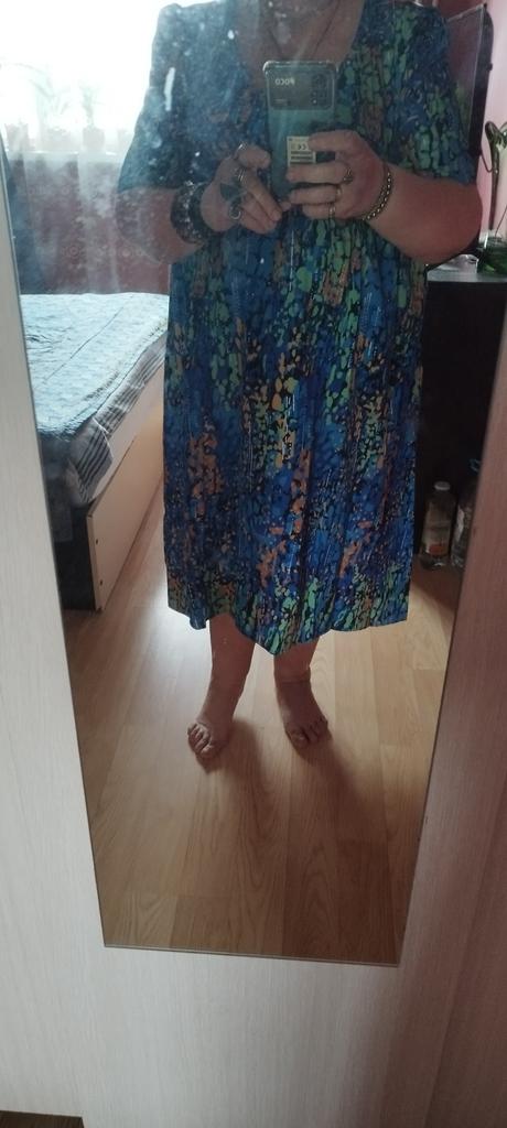 Blue Green Floral Print V-Neck Asymmetrical Hem Summer Dress with Short Sleeves