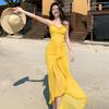 Sunset Fairy Long Slim Fit Spaghetti Strap Dress for Women - Summer Beach Vacation
