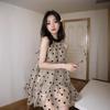 Women's Strapless Polka Dot Non-Slip Puffy Dress - Little Black Summer Dress with Waist-Cinching Design