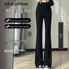 Elevate your wardrobe with these Petite Slimming High Waist Black Micro-Flare Pants, perfect for spring and summer occasions. Designed with a distinctive horseshoe silhouette, these pants offer a flattering fit with their high-waisted cut and slimming effect. Crafted from comfortable spandex material, they provide excellent stretch and ease of movement, making them ideal for active, sportive lifestyles. Whether you're heading out for a casual day or a chic evening outing, these versatile pants are sure to impress.