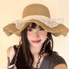 Straw Braid Ruffle Bow Beach Hat - Large Brim, Fairy Style, Dome for Large Head Circumference