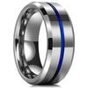 Men's Blue Electroplated 8mm Curved Tungsten Ring, Brushed Finish, Available in US Sizes 7-12