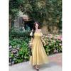 French Yellow Suspender Dress Women's Summer Seaside Vacation Style Dress Loose A-line Skirt Long Skirt