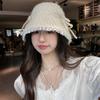 Sweet flower plush bucket hat women's autumn and winter warm versatile knitted hat showing face small wool hat tide