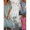 Summer New Women's Fashion Cotton and Hemp V-neck Dress for Women