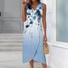 Women's Casual V-Neck Spring/Summer Sleeveless Button Retro Print Dress