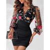 Women Elegant Summer Flocking Mesh Deep V Sleeveless Mini Dress Slim Fit Ruffle Hem Suitable For Vacation And Date, Festival