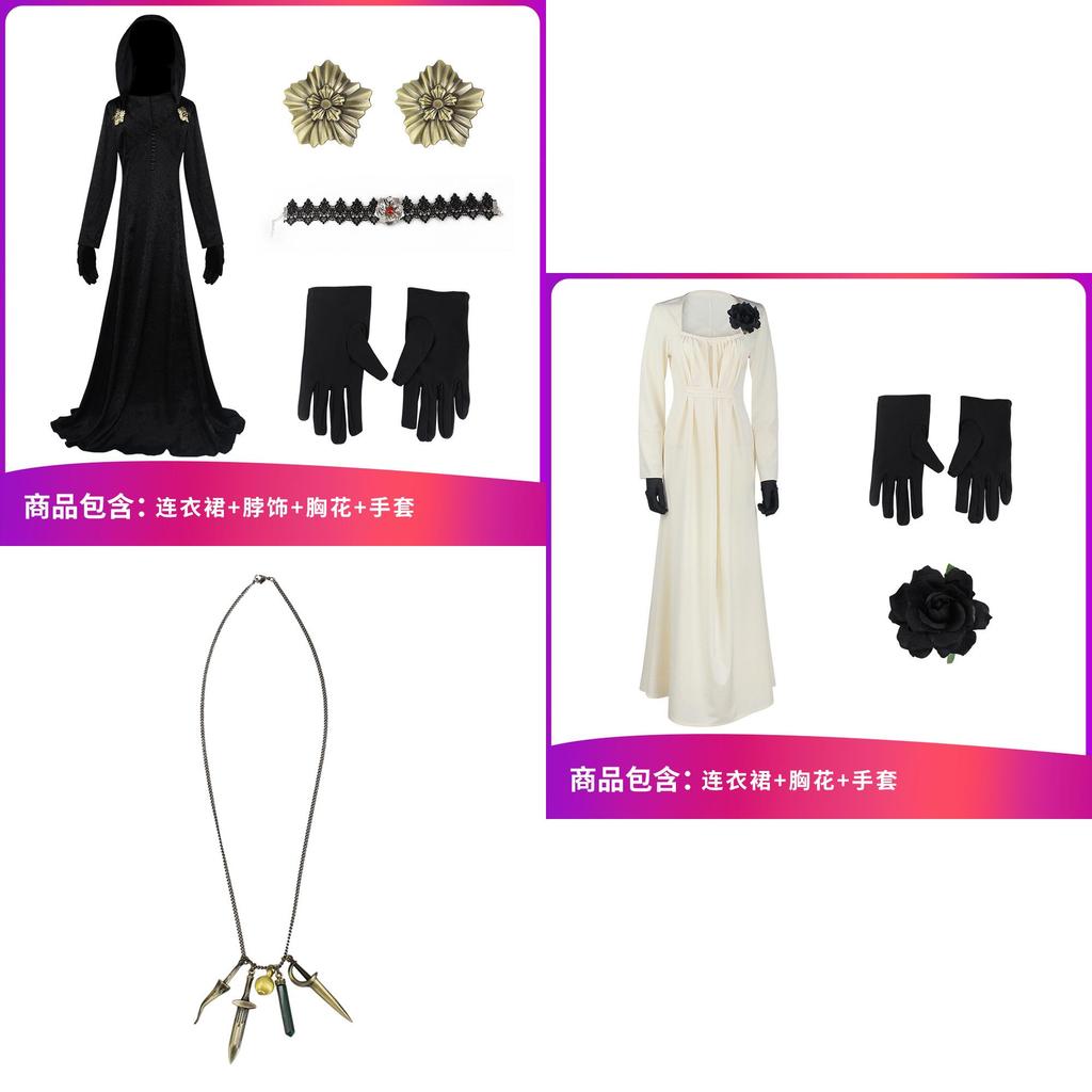 Choose from a variety of options, including the Moth Lady dress (without necklace), Moth Lady necklace, Dimitrescu dress, Dimitrescu necklace, Timmy earrings, and Timmy hat. Each piece is carefully crafted to replicate the iconic costumes from the game, allowing you to fully immerse yourself in the world of Resident Evil 8.