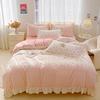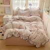 Korean Princess Style Lattice Double Layer Lace Bedding Set Soft Quilt Cover Plaid Style Duvet Covers Set Bed Sheet Pillowcases