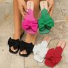 2024 Sandals Fashion Summer Plus Size One-line Solid Color Bow Flat Sandals Outdoor Beach Slippers Elegant Women Shoes