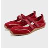 Leather red mesh light mouth double belt ballet shoes women's retro inner height increase versatile fashion Mary Jane shoes children