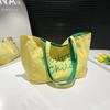 Spring and summer new tote bag lazy wind canvas bag simple double-sided bag plaid contrasting shopping bag
