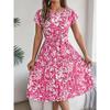 GMXIA Spring Summer Elegant Floral Short-sleeved Wide-swing Pleated Dress for Women's Wear