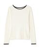This polo knit features a fresh two-tone design with a contrasting glittery stripe for a relaxed feel. While a simple piece, the French sleeves and skipper neckline add a touch of casualness. The soft French sleeve design provides ample coverage for those troublesome upper arms. This versatile piece can be worn with both skirts and pants.