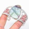 Natural Fluorite Gemstone 925 Sterling Silver Cuff Bangle Adjustable I8S15