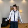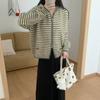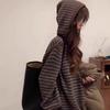 Autumn and winter new striped knitted women's clothing, loose retro hooded women's knitted sweater cardigan women's