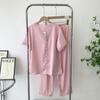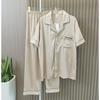 Tencel Cotton Pajamas Women's Summer Short Sleeve Trousers Homewear Summer Thin Cotton Cool Cardigan Two-Piece Suit