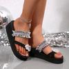 Fashion Women's Rhinestone Decor Wedge Sandals Summer Lightweight Anti Slip Beach Slippers Woman Thick Eva Sole Comfort Outdoor Slides