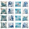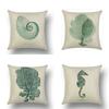 Marine Life Turtle Seahorse Whale Octopus Cushion Cover Pillow Cover Retro Linen Fabric 45x45cm