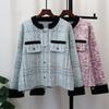 round Neck Single-Breasted Contrast Color Imitation Mink Outerwear Foreign Trade Original Order Loose Version Plaid Autumn and Winter Women Cardigan