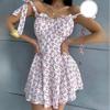 Small Summer New Arrival Fashion Style off-Neck Floral Tie-Neck Smocking Slim Fit Slimming Spaghetti Straps Dress Short Skirt