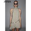 Zaprha 2025 Summer New Simple Sexy Neck Collar Backless Knitted Mini Short Dress 3991100