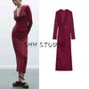 Autumn New Women's Clothing Draped Neckline Short Sleeve Silm Accessories Ruched Decoration Long Dress 1165461