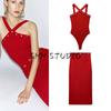 Summer Women's Clothing Ruched Decoration Open Back Hanging Collar Opening Design Knitting Midi Skirt Dress 4938020