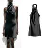 Summer New Product Women clothes French style Design Silk Satin Texture Neck Collar Midi Dress 3592399