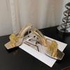 Fashion 2025 Gold Rhinestone Flower Sandals and Slippers Women's Summer New Fashion Temperament Square Toe Open Toe Stiletto Slippers