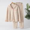 Indulge in luxurious comfort with this elegant pajama set made from milk silk crepe cloth. Featuring long sleeves and long pants, this set is perfect for cozy autumn days and nights. The sweet floral pattern adds a touch of femininity, while the versatile cardigan design makes it suitable for both outdoor and home wear. Experience the perfect blend of style and comfort with this exquisite crinkle fabric pajama set.