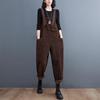 Autumn Rompers Solid Wide Leg Women Casual Straps Suspender Overalls Vintage Corduroy Jumpsuits Overszie