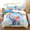 Cartoon Animal Rainbow Duvet Cover Queen Kawaii Elephant Bedding Set Kids Bedroom Decor Quilt Cover Polyester Comforter Cover