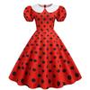 Αναβαθμίστε το στυλ σας με αυτό το κομψό γυναικείο φόρεμα που διαθέτει μοναδικό γιακά για κούκλα και γοητευτικά φουσκωτά μανίκια για μια νότα κομψότητας. Η σιλουέτα σε γραμμή Α συμπληρώνει υπέροχα τη σιλουέτα σας, ενώ το ρετρό σχέδιο με κουκκίδες με γιακά κούκλας, καθορισμένη μέση και μεγάλο στρίφωμα αποπνέει μια κλασική γοητεία.