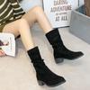 Large size snow boots women's 2024 autumn and winter new European and American foreign trade round head thick heel stacking boots cover mid-foot boots