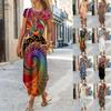 Women's Summer Maxi Dress V-Neck Short Sleeve Long Dress Casual Ethnic-style Printed Boho Dress