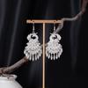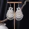 Bohemian Ethnic Miao Silver Tassel Earrings with Butterfly, Peacock, and Flower Design for Women – Long Dangle Jewelry for Travel Photos.